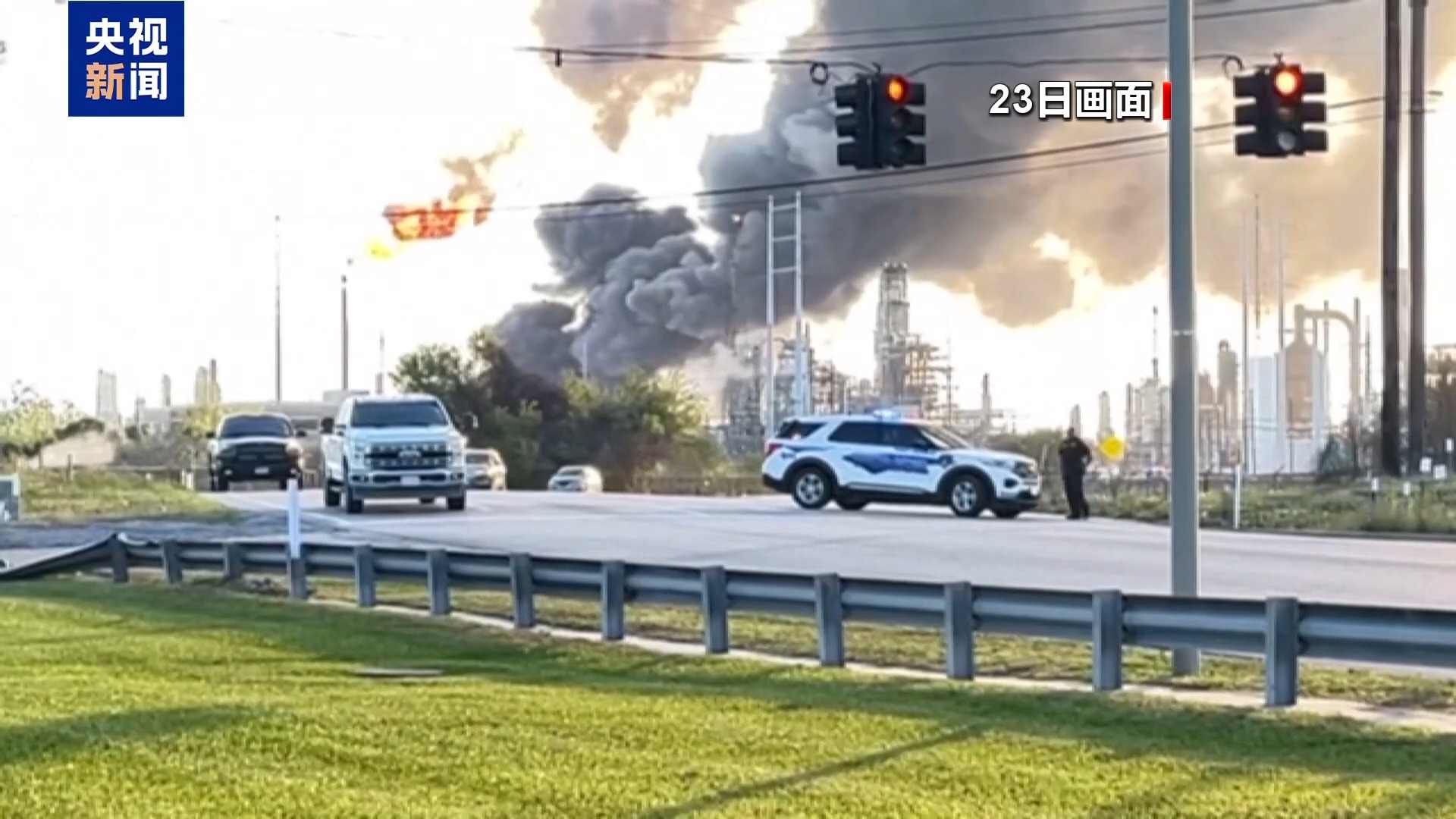 央视记者 刘旭:我身后就是得克萨斯州亚瑟港的瓦莱罗炼油厂,这里在当地时间23日晚发生巨大爆炸,爆炸引起的大火和黑烟清晰可见。附近十几公里外的居民表示感受到了房屋震动。当地时间24日凌晨,当地消防部门称,在燃烧几小时后,爆炸导致的大火已经被扑灭。在24日中午,我们赶到现场,在允许进行拍摄的区域已经看不到大火的痕迹,甚至是黑烟也看不到了。稍早前我们从炼油厂拿到了一份最新声明,炼油厂表示,结合联合港区消防部门以及得州空气质量监测部门发布的共同声明,随着对附近区域紧急避难令的解除,目前炼油厂区域的空气质量已经没有安全威胁。