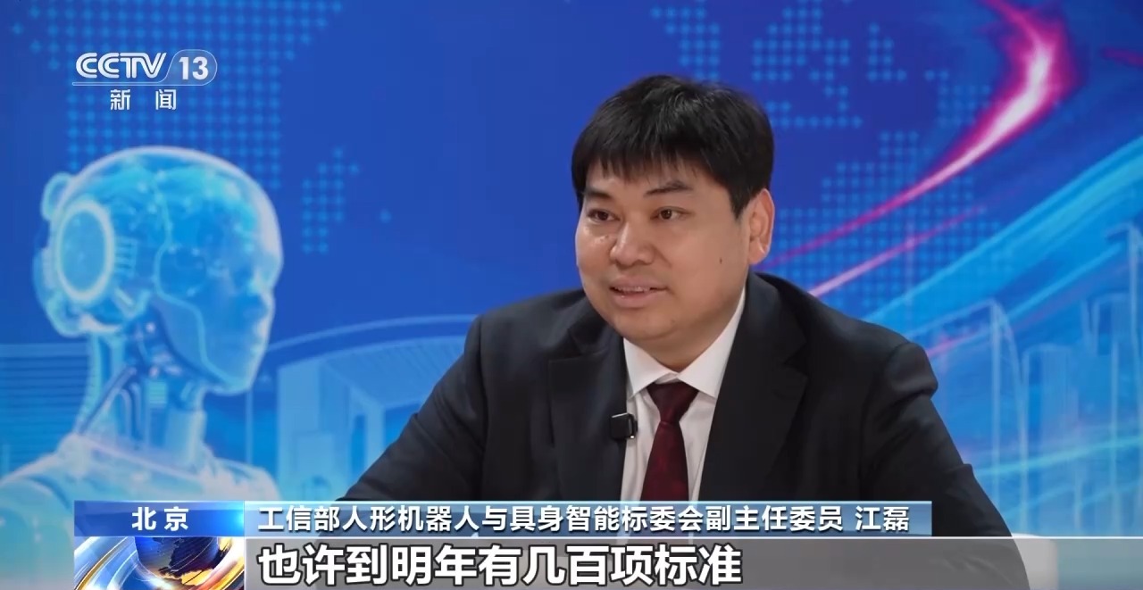 工信部人形机器人与具身智能标委会副主任委员 江磊:我觉得我们今年发的52项标准,我给它比喻,只能发一个茅草棚,也许到明年有几百项标准,慢慢地把这个茅草棚变成一个房子,未来变成一个别墅,那这个行业就健壮了。