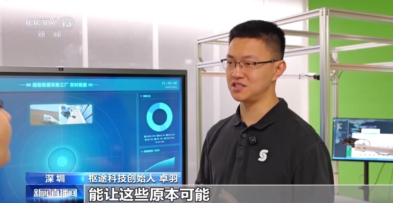 枢途科技创始人 卓羽:目前我们已经采集了过万小时的视频,我们能够加工上百万条的数据,同时我们的场景其实也非常多样,能让这些原本一个人工作的视频,似乎没有什么价值的视频,变成真正有价值的、能够为机器人训练去提供认知的具身数据。